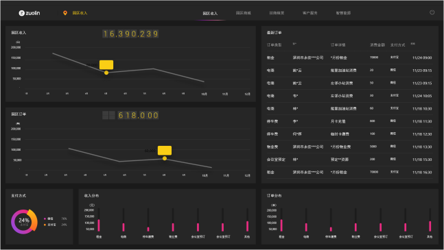 精準(zhǔn)盤點,一手掌握各項經(jīng)營數(shù)據(jù)租金、停車費(fèi)、物業(yè)費(fèi)、訂單分布情況等